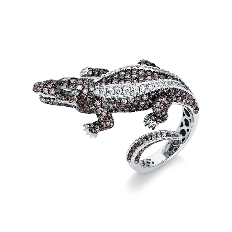 ring 18 kt WG crocodile, partly black rhodium plated