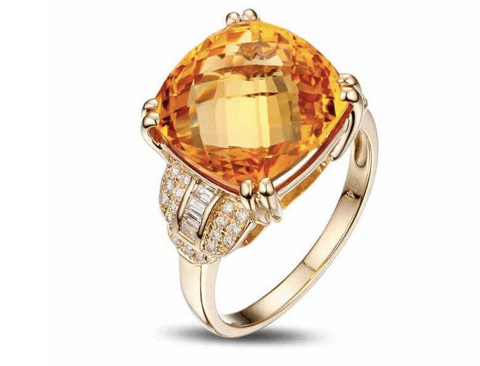 6.55 carat Natural Citrine. 0.82 yellow sapphires. 18K Gold Ring. Luxury packaging included. We can make a free customized 3D drawing based on this design, your ring size and your wishes. Please contact us below. Also if you require advice from our experts.