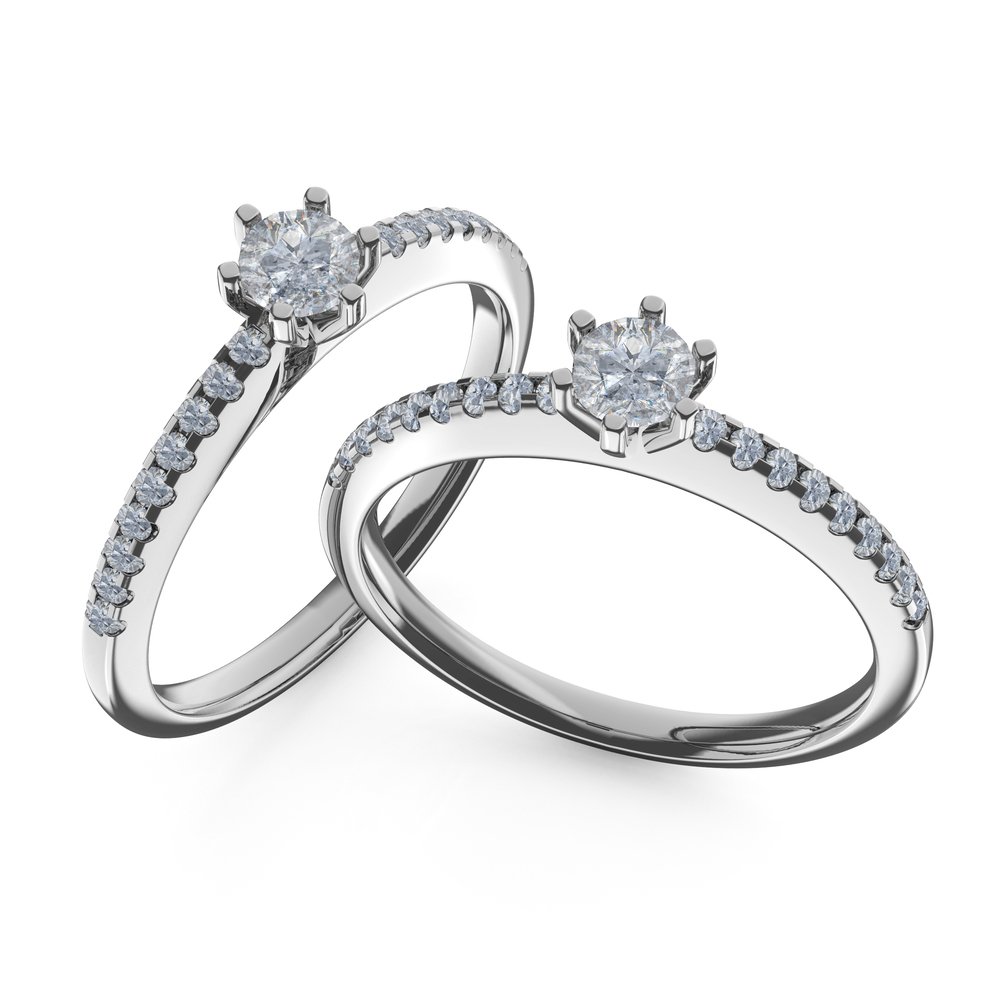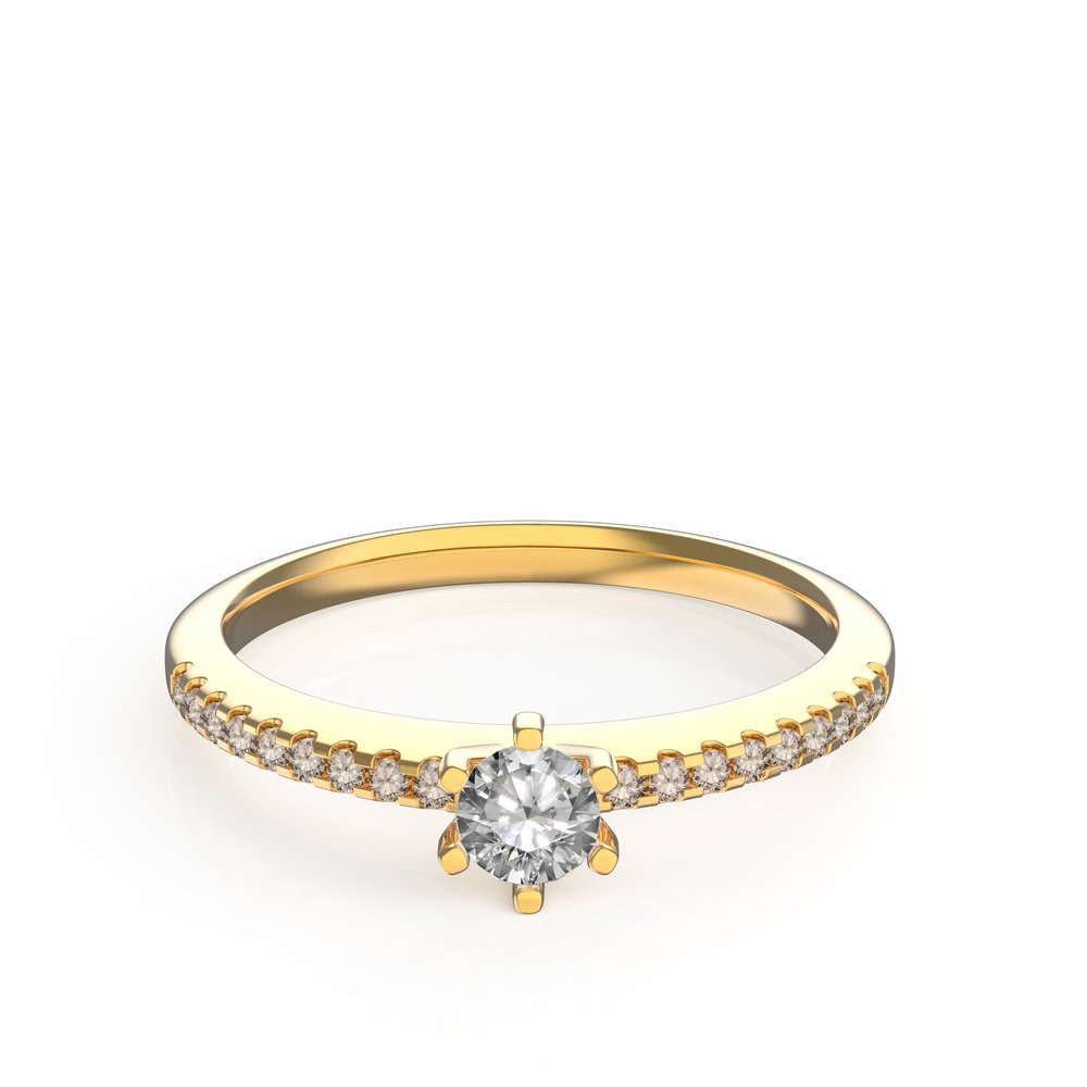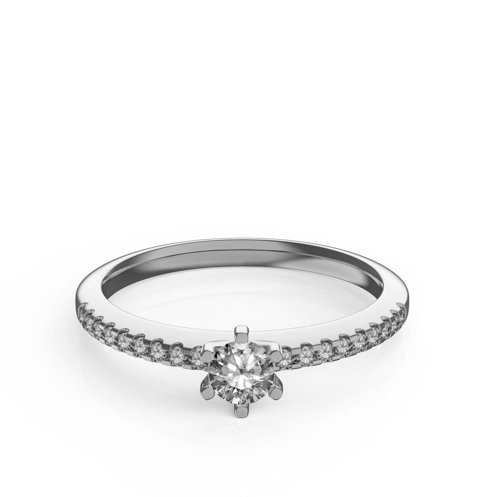 0.18 carat H VS2 triple excellent none fluor. GIA certified round diamond. 18K Gold. 0.10 carat of G VS side diamonds. Diameter main diamond ~3.6mm. GIA certificate and luxury packaging included. We can make a free customized 3D drawing based on this design, your ring size and your wishes. Please contact us below. Also if you require advice from our experts.