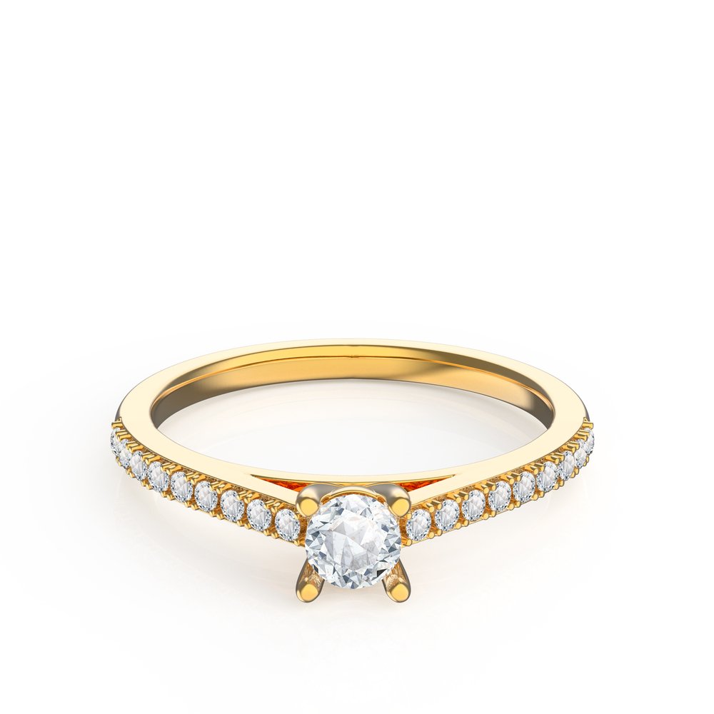 0.18 carat H VS2 triple excellent none fluor. GIA certified round diamond. 18K Gold. 0.18 carat of G VS side diamonds. Diameter main diamond ~3.6mm. GIA certificate and luxury packaging included. We can make a free customized 3D drawing based on this design, your ring size and your wishes. Please contact us below. Also if you require advice from our experts.