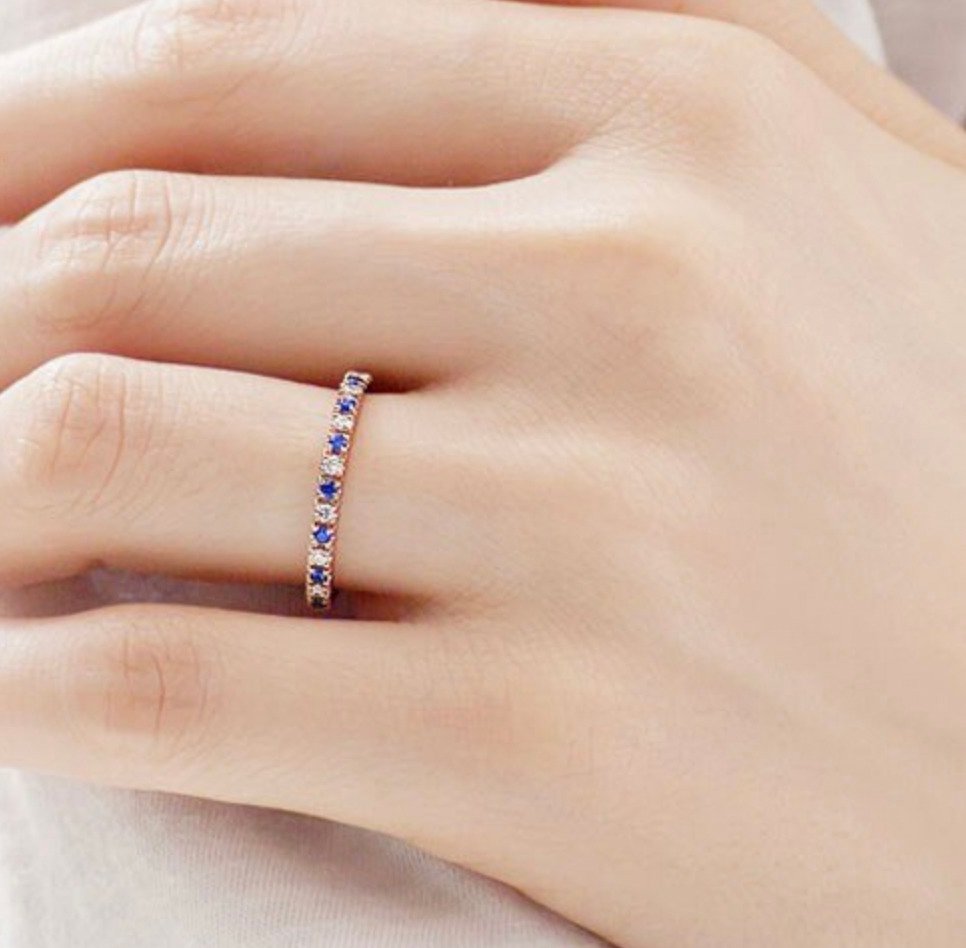 0.16 carat Diamond & 0.17 carat Sapphires. 18K Gold Ring. Luxury packaging included. We can make a free customized 3D drawing based on this design, your ring size and your wishes. Please contact us below. Also if you require advice from our experts.