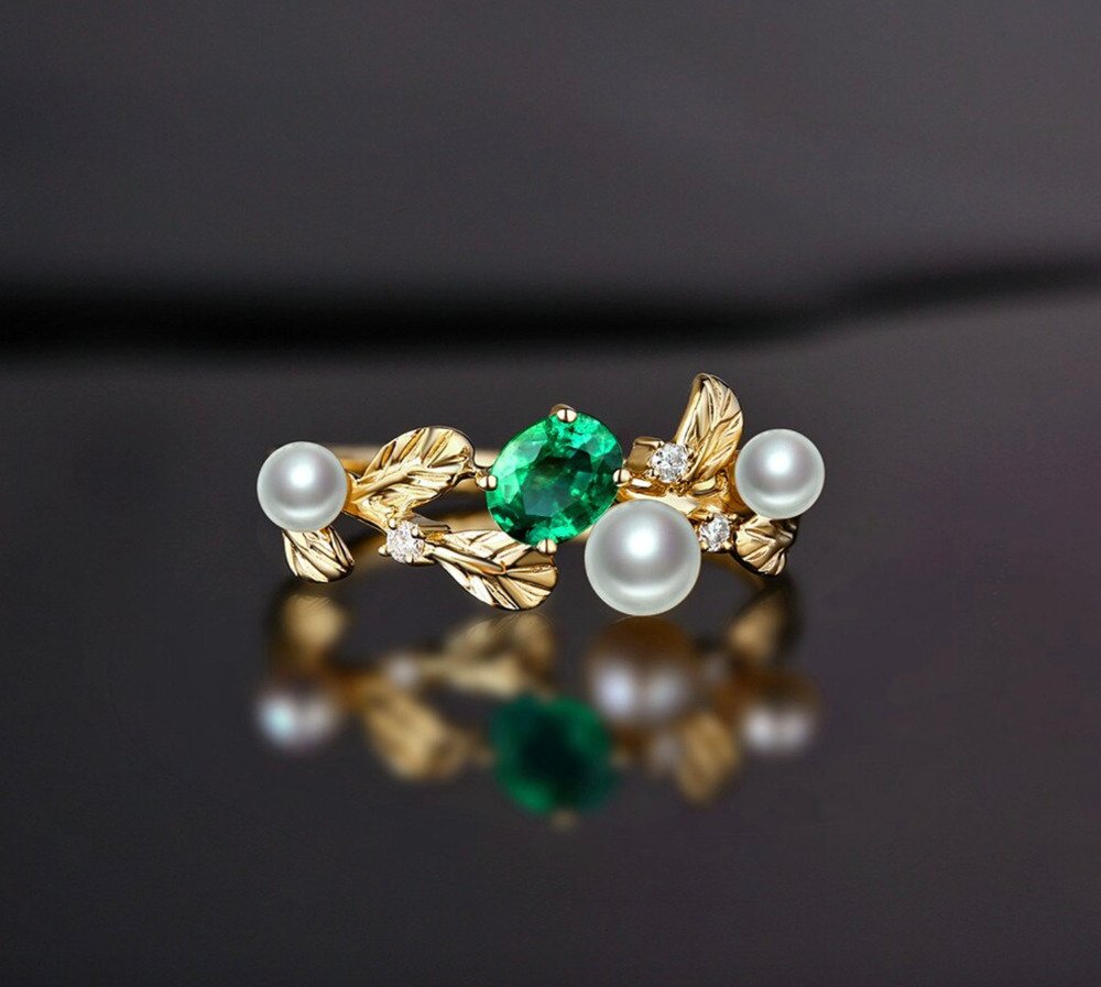 0.32 carat Natural Emerald. Pearls & Diamonds. 18K Gold Ring. Luxury packaging included. We can make a free customized 3D drawing based on this design and your wishes. Please contact us below. Also if you require advice from our experts.