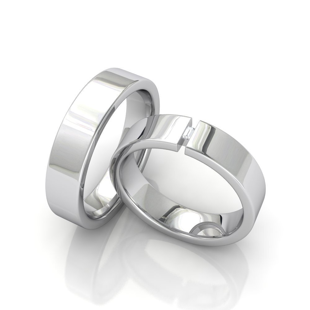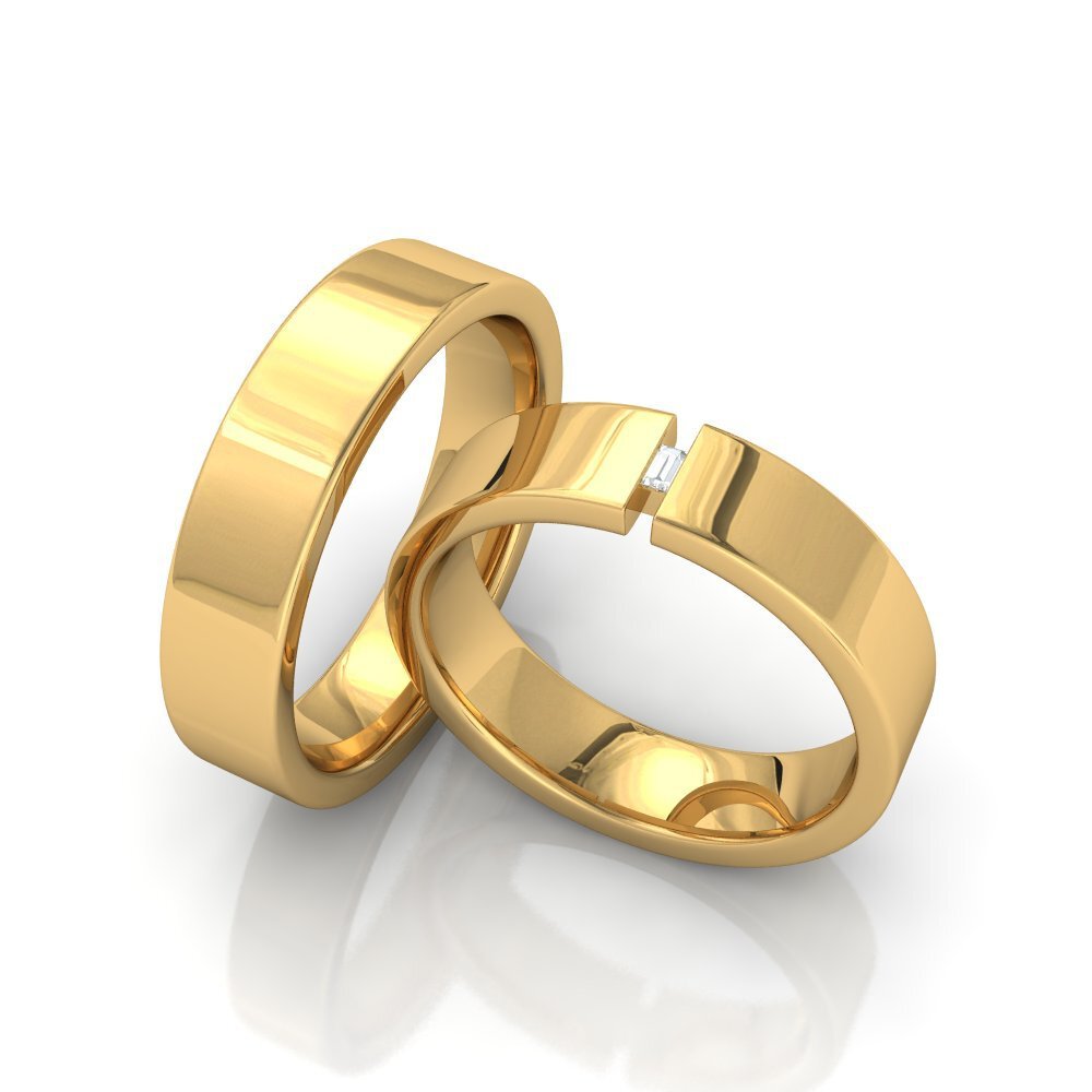 This is a configurable ring set. Both the width and the profile can be chosen. The set shown has the following specifications: Weight around 14 grams .18K white gold. 18K yellow gold.0.18K rose gold. 950 Platinum . 0.07 carat diamond. G color. VS clarity. Excellent cut. Width 5 mm, Height 1.8 mm. Luxurious packaging included. We can make a free customized 3D drawing based on this design, the ring sizes and your wishes. Please contact us below. Also if you require advice from our experts.
