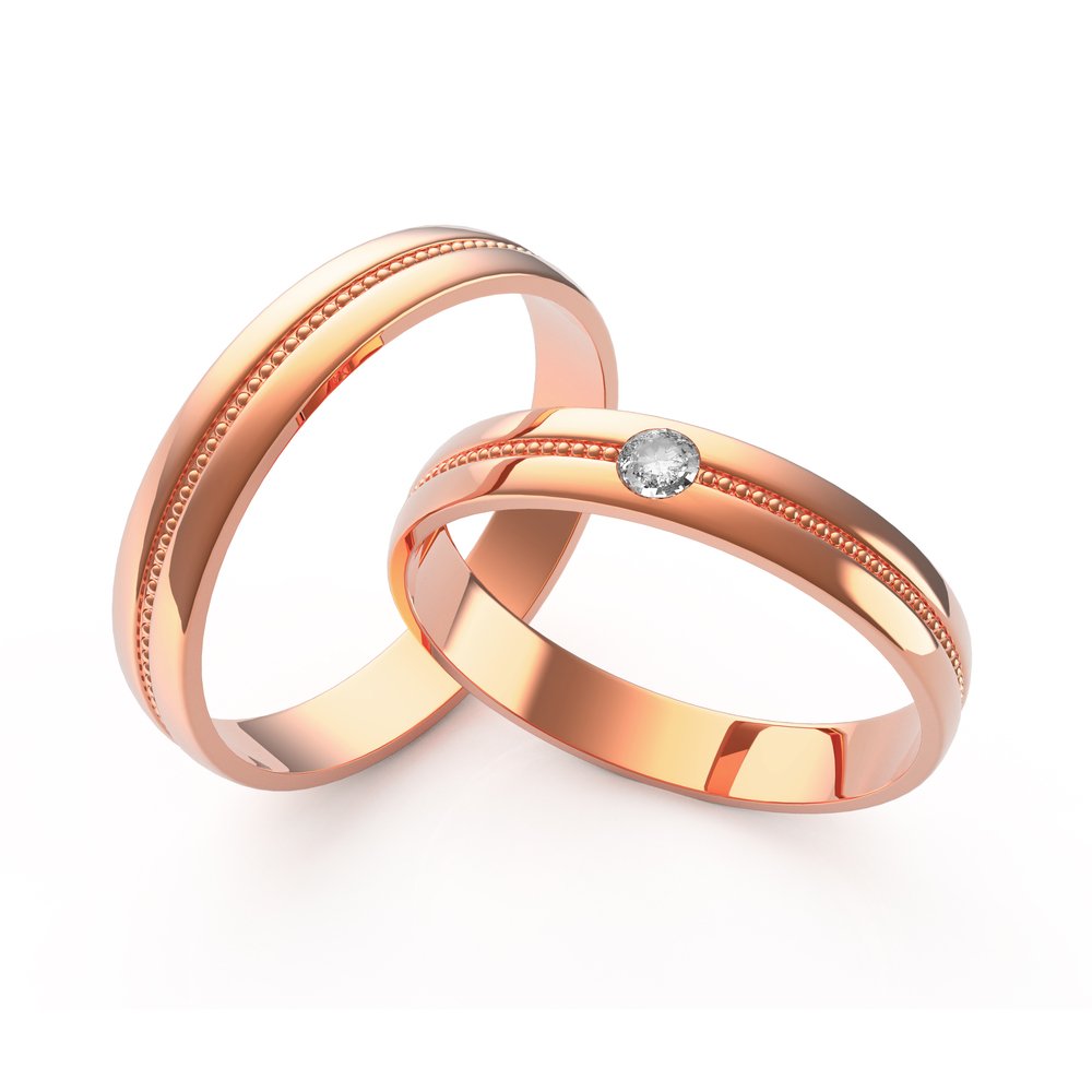 This is a configurable ring set. Both the width and the profile can be chosen. The set shown has the following specifications: 18K white gold. Mens ring width 5mm. Womens ring width 3.5mm. Height 2 mm. 0.07 carat diamond total weight. G color. VS clarity. Excellent cut. Luxurious packaging included. We can make a free customized 3D drawing based on this design, the ring sizes and your wishes. Please contact us below. Also if you require advice from our experts.
