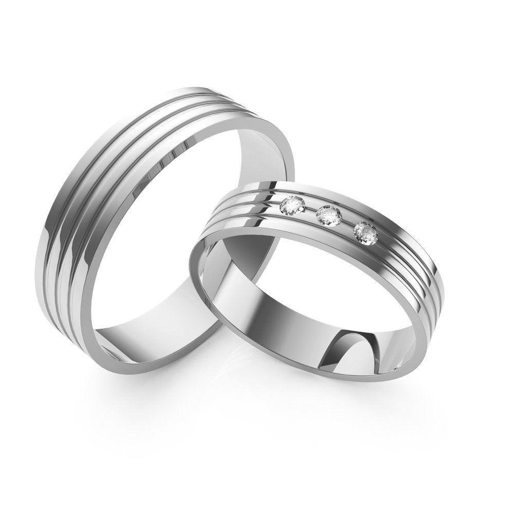 This is a configurable ring set. Both the width and the profile can be chosen. The set shown has the following specifications: 950 Platinum. Mens ring width 5mm. Womens ring width 4mm. Height 2 mm. 0.045 carat diamond total weight. G color. VS clarity. Excellent cut. Luxurious packaging included. We can make a free customized 3D drawing based on this design, the ring sizes and your wishes. Please contact us below. Also if you require advice from our experts.