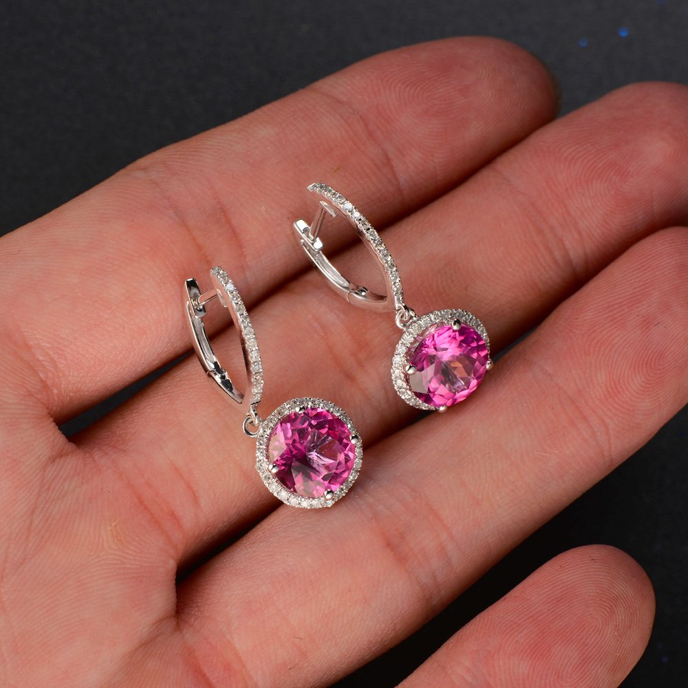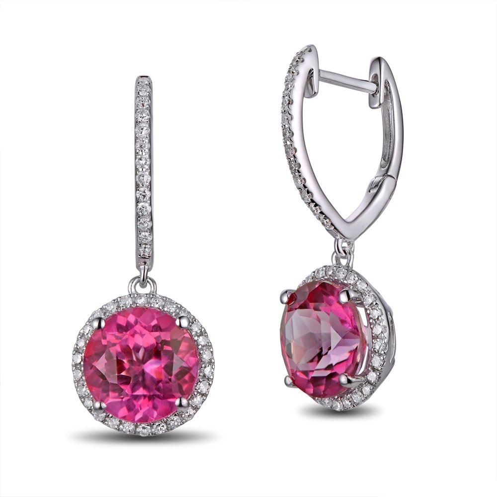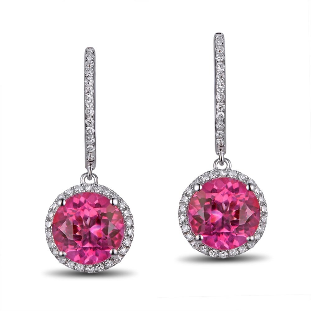 4.95 carat Pink Topaz. Diamond. 18K Gold Earrings. Luxury packaging included. We can make a free customized 3D drawing based on this design and your wishes. Please contact us below. Also if you require advice from our experts.